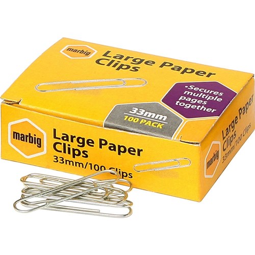 Recommended for the Marbig Paper Clips Large 33mm Chrome Box Of 100