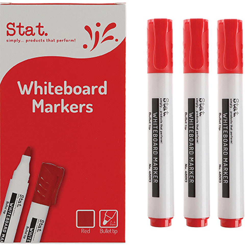 Write clearly and confidently with these high-quality red whiteboard markers. Designed for smooth, consistent performance, the 2.0mm bullet nib delivers precise lines that are easy to read from a distance. The fast-drying dry erase ink wipes off effortlessly from whiteboards and other non-porous surfaces such as glass, leaving no residue behind.