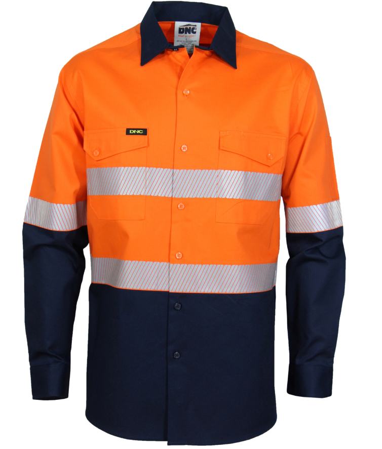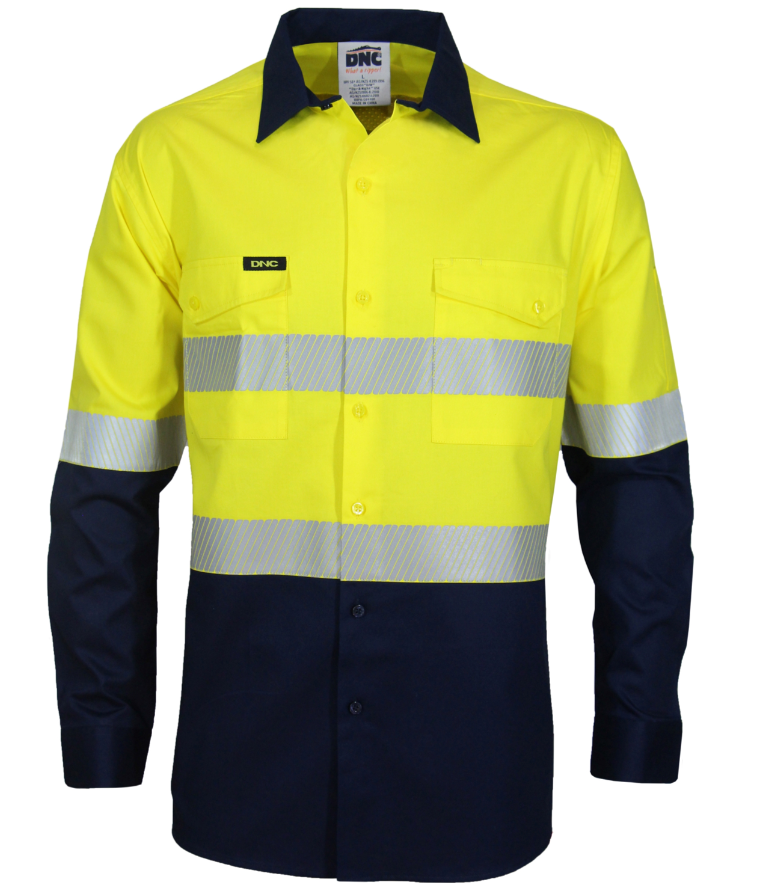155gsm L/W cotton shirt L/S with under arm & upper back mesh air flow venting, twin button down flap chest pockets, Hoop pattern super lighter weight segmented tape will improve breathability & reduce the heat build up of the reflective tape, also provides better flexibility. Modern & Stylish NSW Rail Compliant.