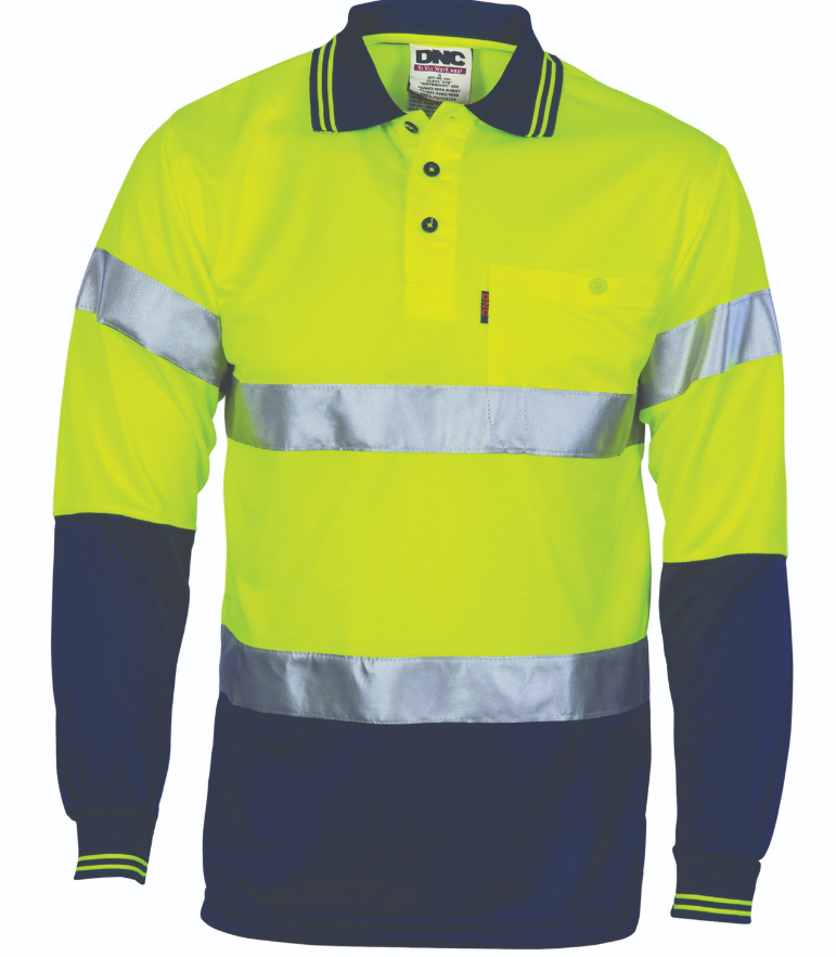 HiVis Two Tone front & Back Cool Breathe Long Sleeve polo with CSR Reflective Tape