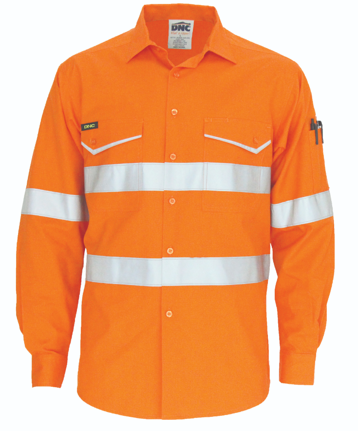 Softer feel but stronger and cooler RipStop fabric. Twin chest pocket with innovative 'V' shape reflective panel flap. Underarm & upper back york, 3 way airflow cotton mesh cooling vents. Hoop pattern CSR Reflective Tape.