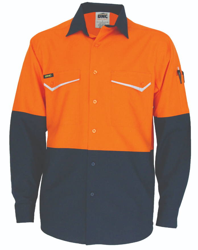 Softer feel but stronger and cooler RipStop fabric. Twin chest pocket with innovative 'V' shape reflective panel flap. Underarm & upper back york, 3 way airflow cotton mesh cooling vents.
