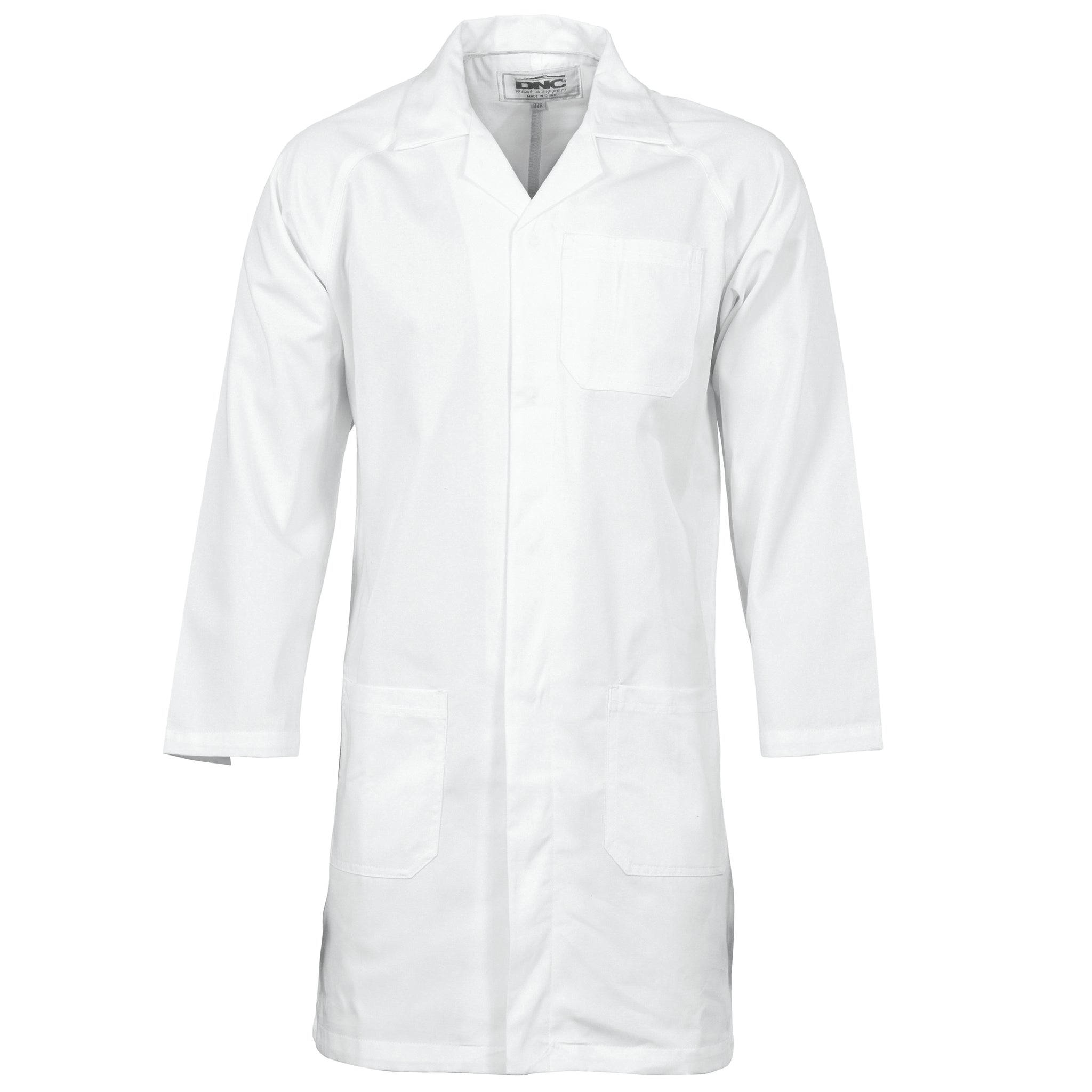 Raglan Sleeves, metal press studs closure, two side pockets and chest pocket with pencil partition.